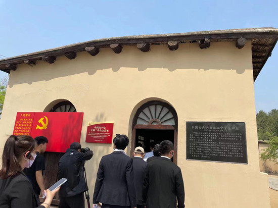 10點40分。大家伙兒合影留念。隨之,人們來到中共中央舊址游覽,此處曾是中共中央和解放軍總部所在地。建國前中共中央的許多重要會議在此召開,包括三大戰(zhàn)役在內(nèi)的一系列戰(zhàn)役在此運籌和指揮,毛澤東的幾十篇光輝著作在此誕生,它是當(dāng)年中國革命的領(lǐng)導(dǎo)中心。在中國共產(chǎn)黨七屆二中全會舊址,人們坐下來聽解說員的解說,“在奪取全國政權(quán)后要經(jīng)受住執(zhí)政的考驗,務(wù)必使同志們繼續(xù)地保持謙虛、謹(jǐn)慎、不驕、不躁的作風(fēng),務(wù)必使同志們繼續(xù)地保持艱苦奮斗的作風(fēng)”,毛澤東同志70多年前講的話,依然振聾發(fā)聵。